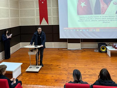 Anma programı, Doç. Dr. Bayram Çağlar’ın özgeçmişinin okunmasıyla başladı. Ardından kürsüye çıkan Fakültemiz Dekanı Prof. Dr. Gülsüm Çalışır, konuşmasında Bayram Çağlar’ın akademik ve insani yönlerine vurgu yaptı. Çalışır, her bireyin biricik olduğunu ifade ederek, bu anma töreninin yalnızca bir veda değil; aynı zamanda merhum hocamızın fakültemizde bıraktığı izlerin, öğrenciler üzerindeki etkisinin ve emek verdiği akademik ortamların ailesi tarafından da görülmesini sağlamak amacıyla düzenlendiğini belirtti. Dekanımız Prof. Dr. Çalışır, konuşmasını merhum hocamızın ailesine başsağlığı ve destek mesajlarıyla tamamladı.
