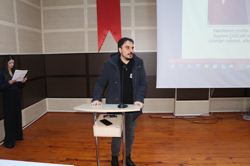 Fakültemiz Dekan Yardımcısı Dr. Öğr. Üyesi Kaan Gez de konuşmasında, bazı değerlerin kaybedildikten sonra daha iyi anlaşıldığını vurgulayarak, Bayram Çağlar’ın gerek meslektaşları gerekse öğrencileriyle kurduğu samimi ve destekleyici ilişkilerin fakültemiz için kalıcı bir miras olduğunu belirtti.