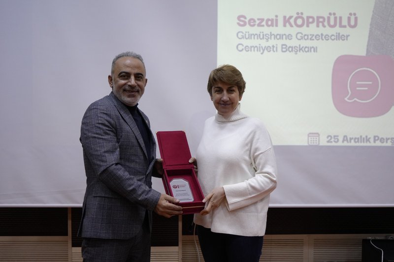 Etkiliğe konuşmacı olarak katılım sağlayan Gümüşhane Gazeteciler Cemiyet Başkanı Sezai Köprülü, gazetecilik mesleğinin güncel sorunları, etik ilkeleri ve sahadaki deneyimlerine ilişkin değerlendirmelerde bulunarak, öğrencilerle mesleki bilgi ve tecrübelerini paylaştı. Etkinlik, öğrenciler tarafından yoğun ilgiyle takip edildi.