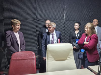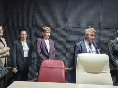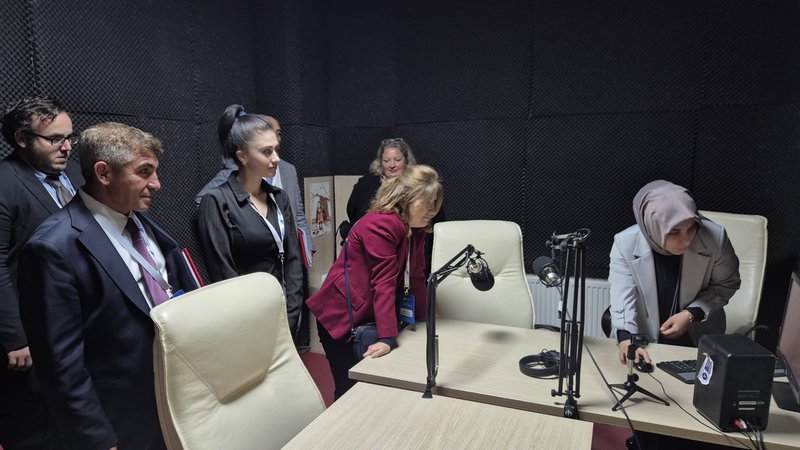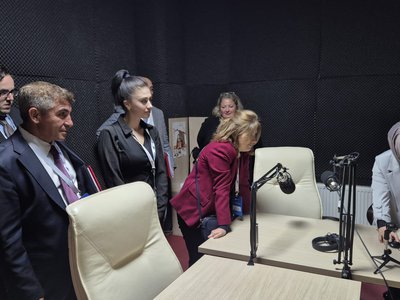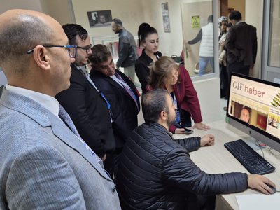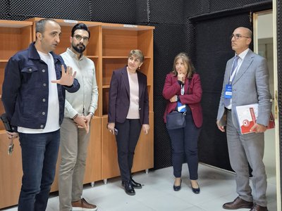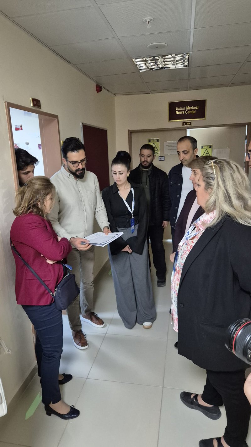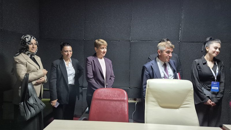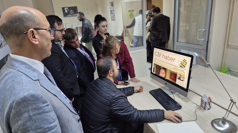 Fakültemiz Dekanı Prof. Dr. Gülsüm Çalışır ve Medya Merkezi Koordinatörü Dr. Öğr. Üyesi Kaan Gez heyete fakültenin medya üretim süreçleri, öğrenci başarıları, yarışmalardan kazanılan ödüller ve toplumsal katkı projeleri hakkında bilgi verdi.